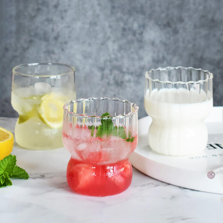 New Listing Round Layered Vertical Stripe Coffee Glass Cup Transparent Single Wall Ice Cream Glass Mug