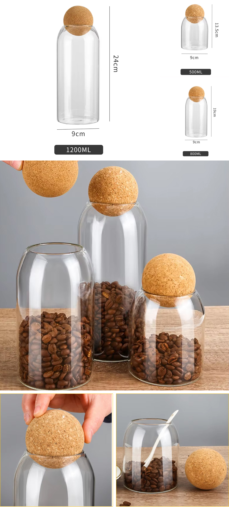 Factory Direct Sale Moisture Proof Household Tea Coffee Sealed Glass Spice Storage Jars with Round Cork