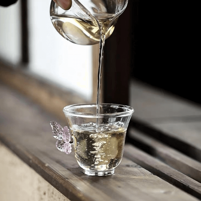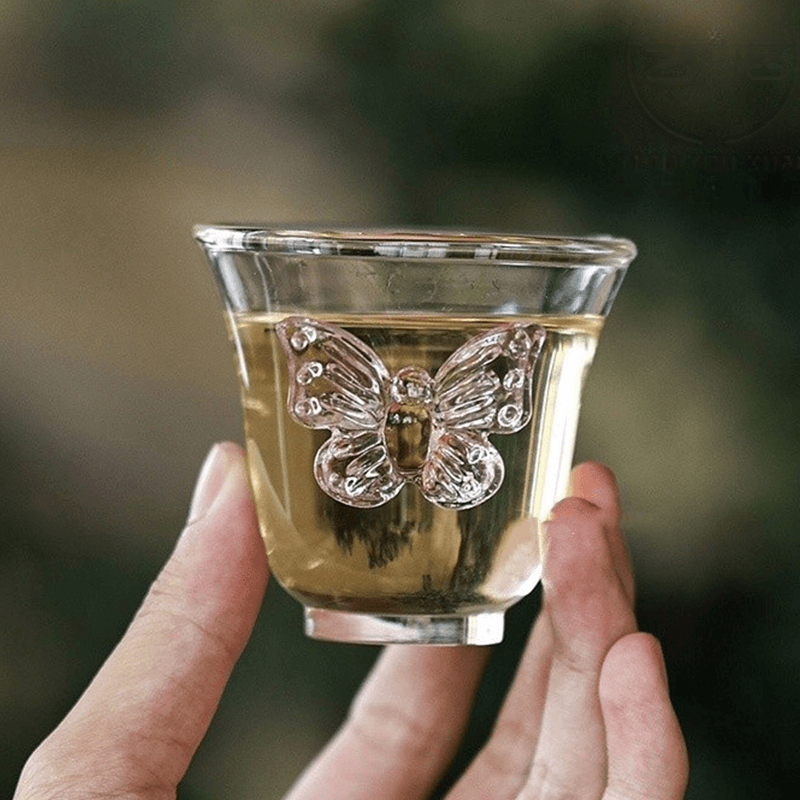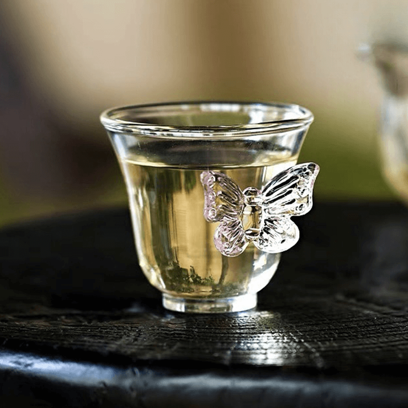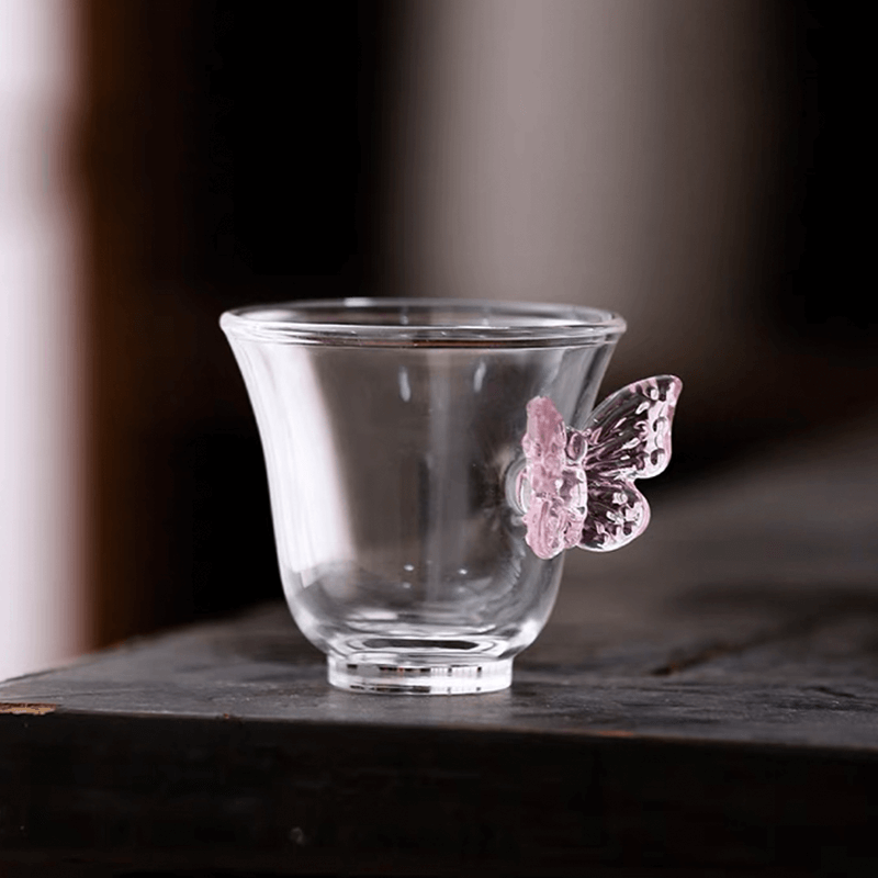 Factory Direct Sale pink butterfly Heat Resistant Glass Saucer love Home Sample Tea Cup