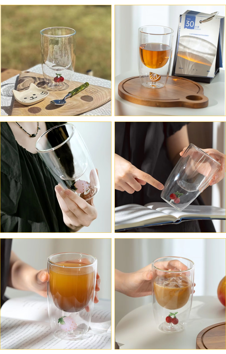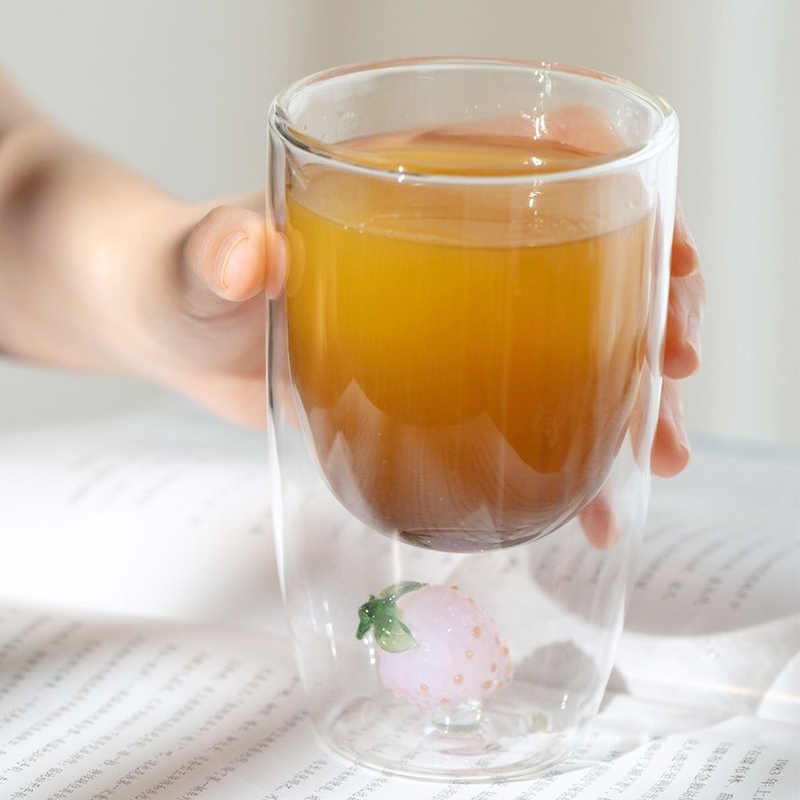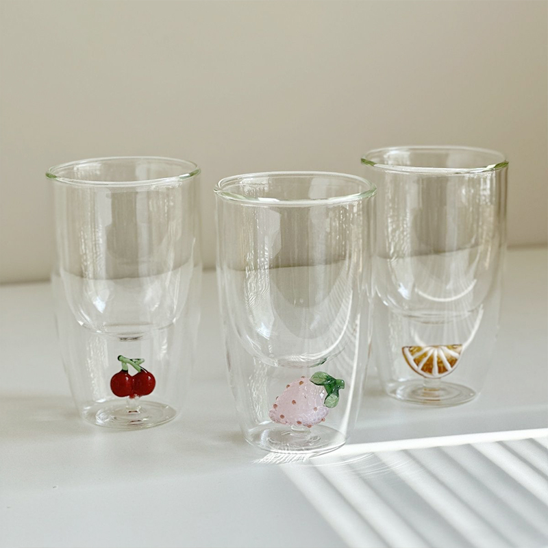 Cute Fruit Creative Insulated Heat-Resistant Double Wall Borosilicate Glass Tea Coffee Juice Milk Cup for Drinking