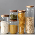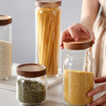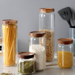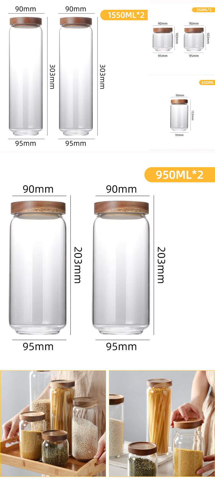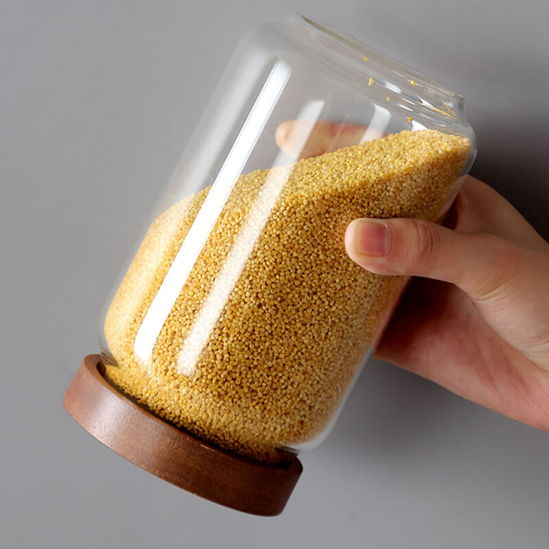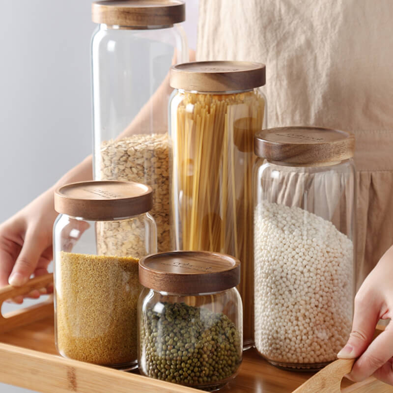 High Borosilicate Glass Transparent Food Grade Kitchen Airtight Storage Jars with Wooden Lid