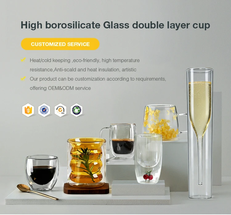 High Borosilicate Heat Resistant Insulated Double Layer Tea Milk Clear Glass Cups for Coffee