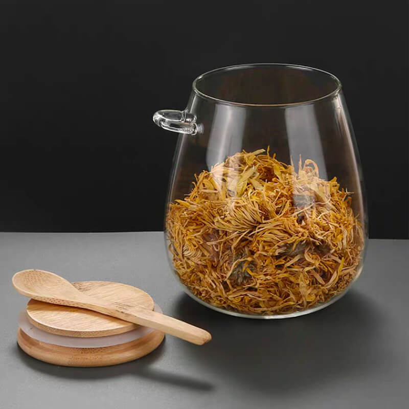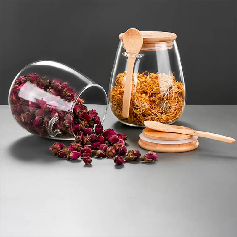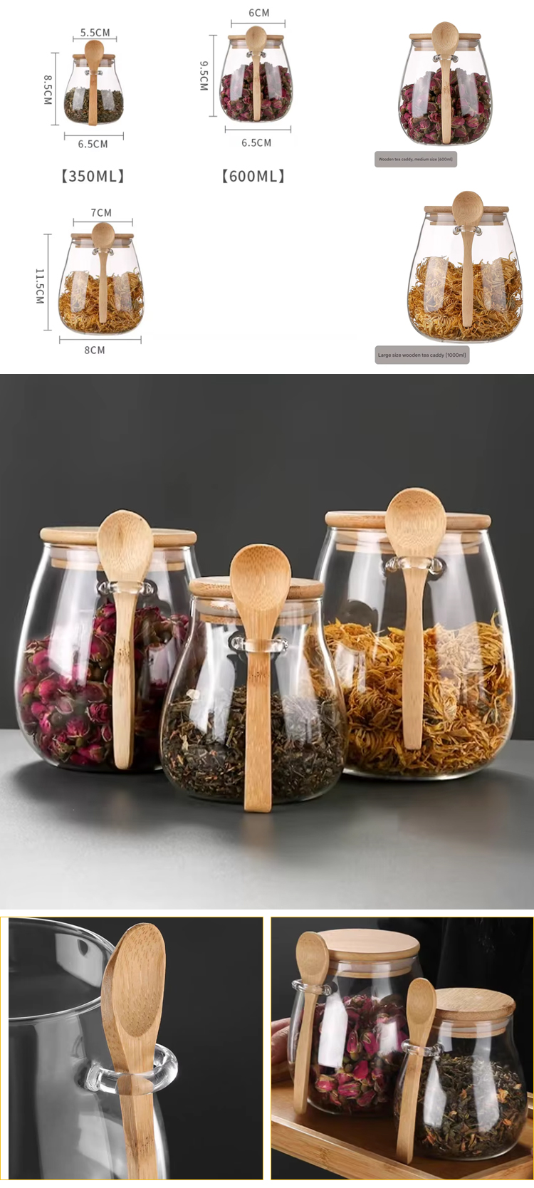 Low Price Sale Leak-Proof Large Capacity Borosilicate Food Glass Transparent Grain Candy Tea Storage Jar with Spoon