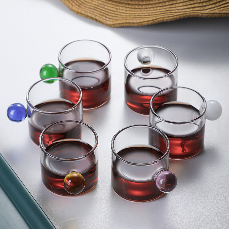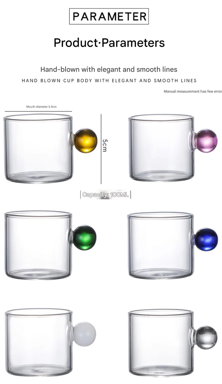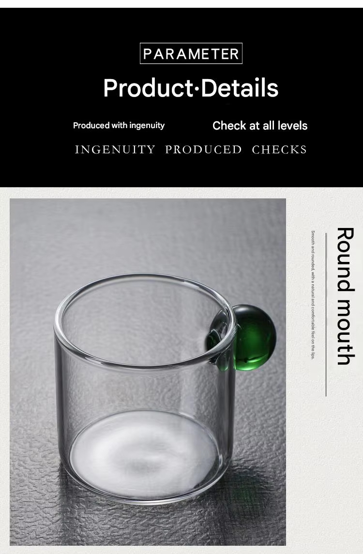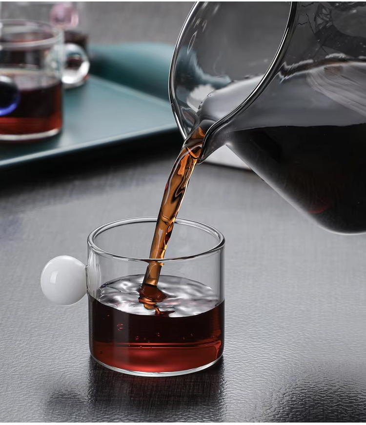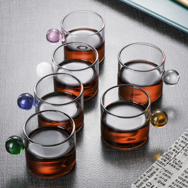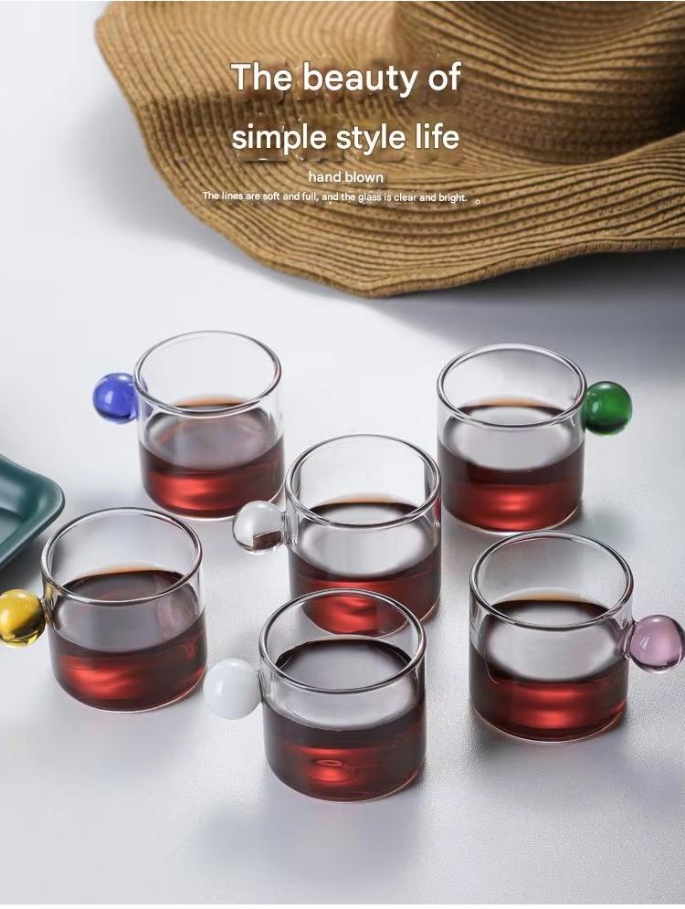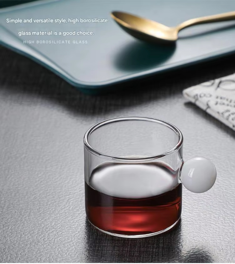 Manufacturer Well Made Heat Resistant Small Tea Glass Cup Ball Handle Coffee Cup