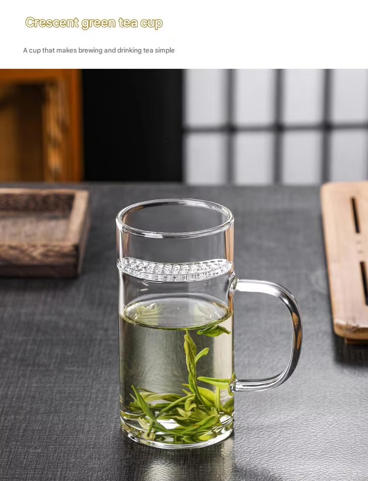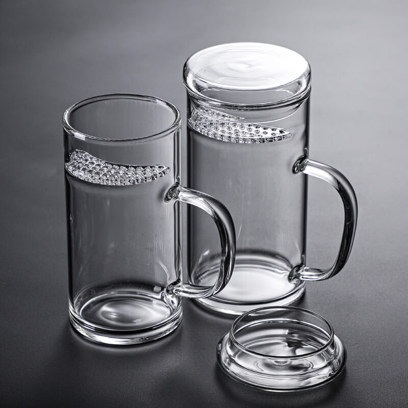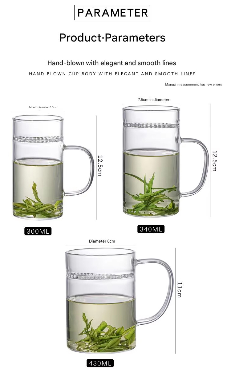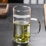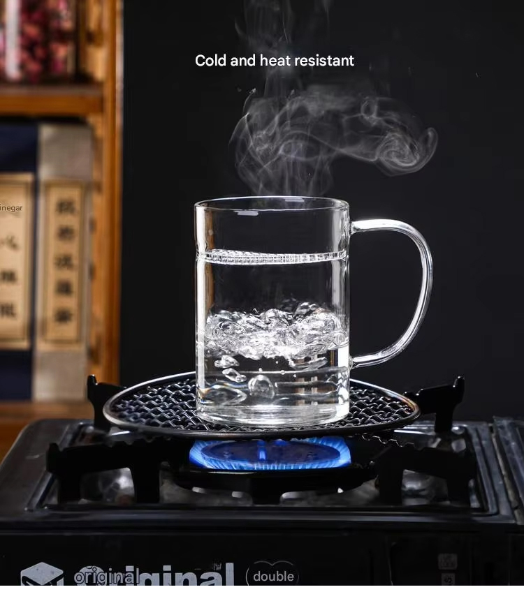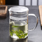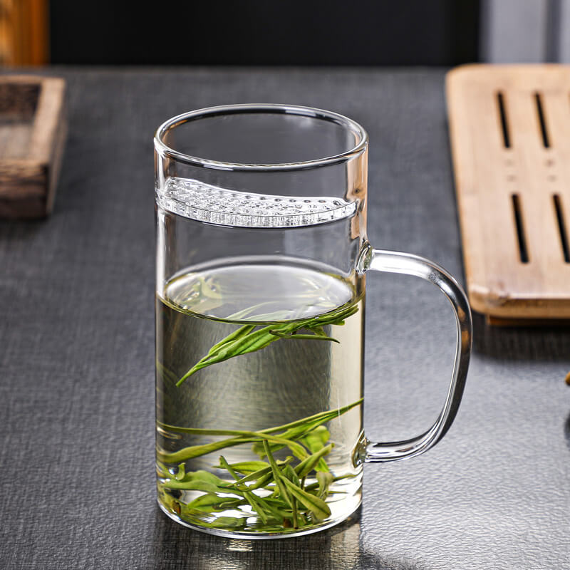 New Design Durable Transparent Heat Proof Clear Borosilicate Glass Tea Mug with Filter and Handle