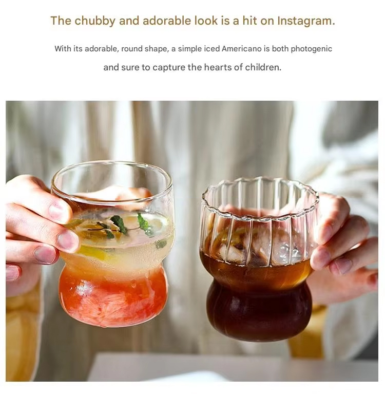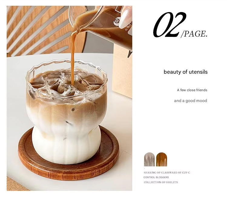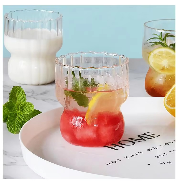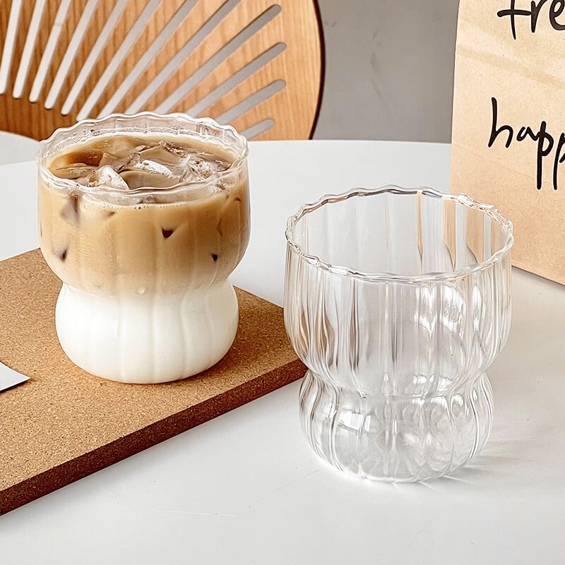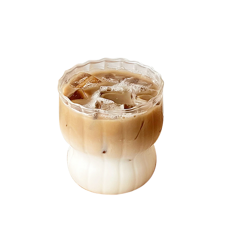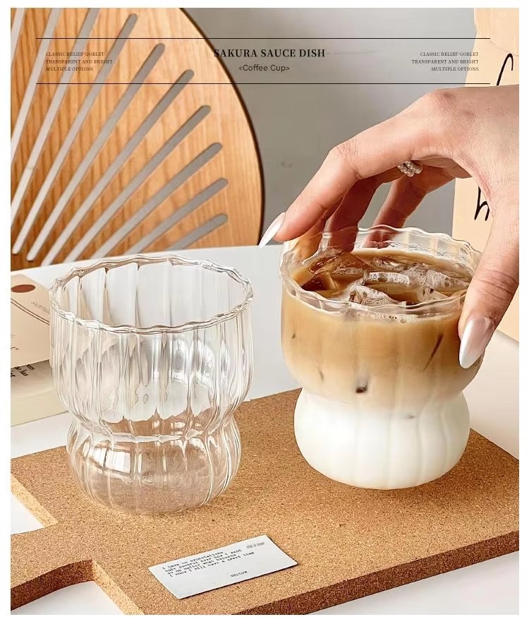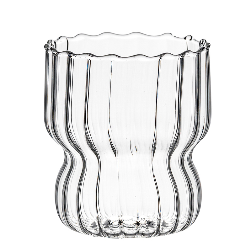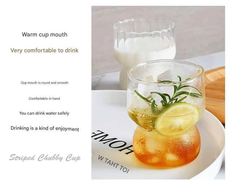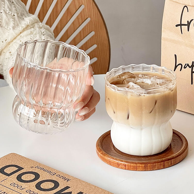 New Listing Round Layered Vertical Stripe Coffee Glass Cup Transparent Single Wall Ice Cream Glass Mug