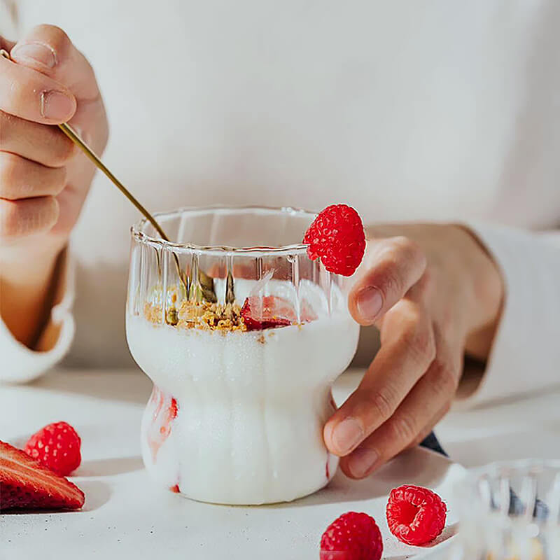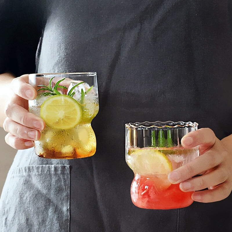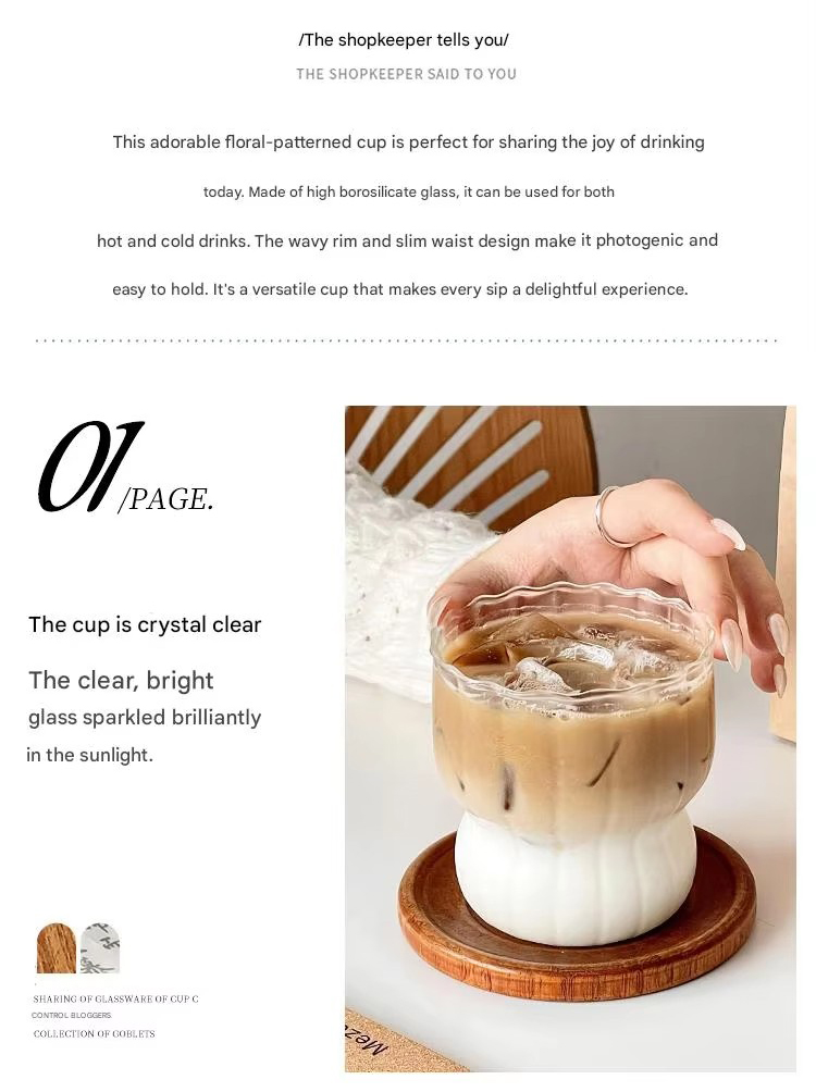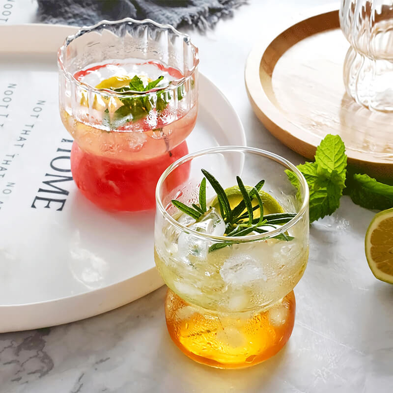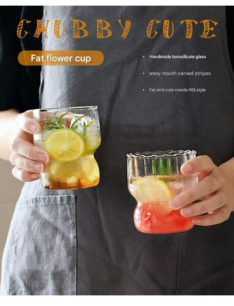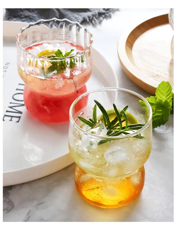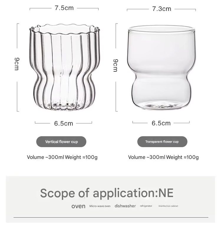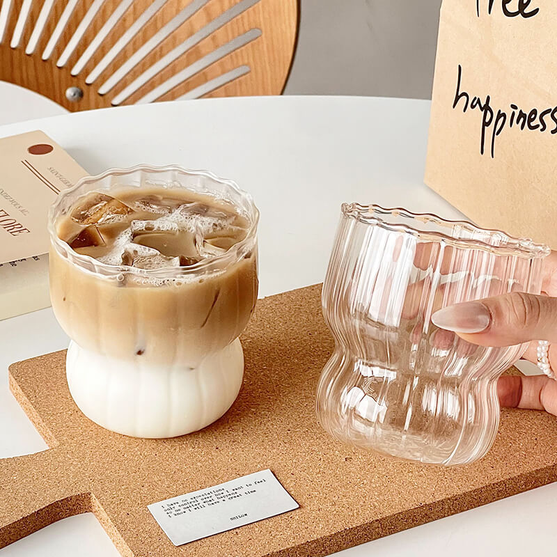 New Listing Round Layered Vertical Stripe Coffee Glass Cup Transparent Single Wall Ice Cream Glass Mug