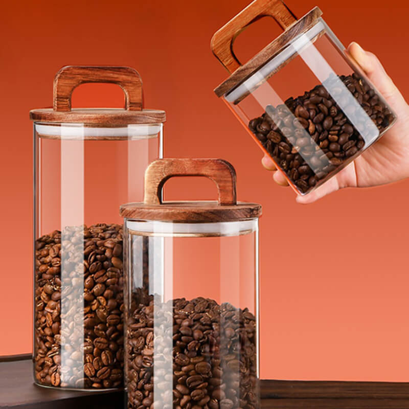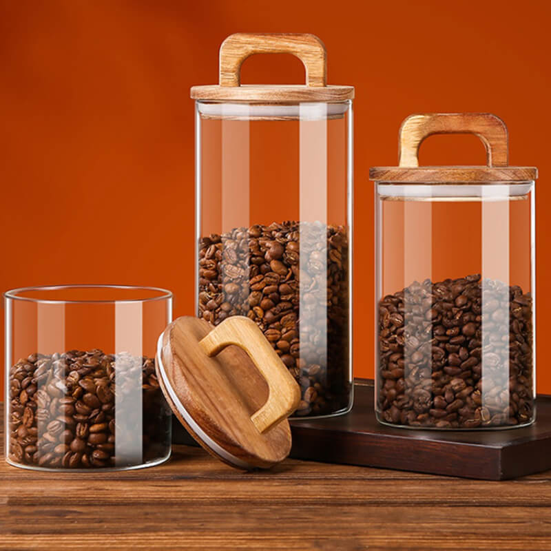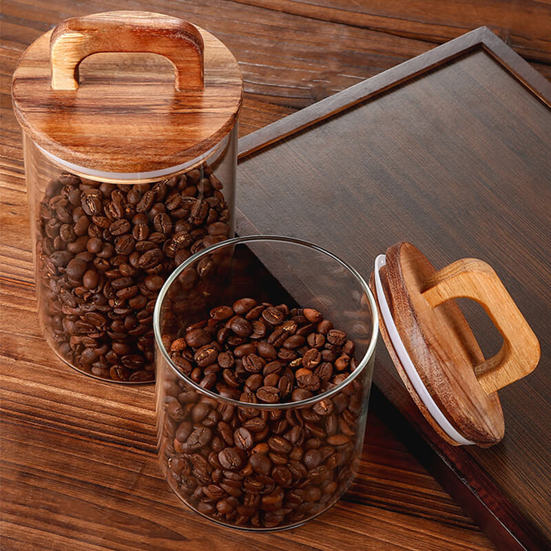 Wholesale Kitchen Coffee Beans Dried Fruit Storage Glass Tea Cans Airtight Glass Storage Jars with Wooden Lid